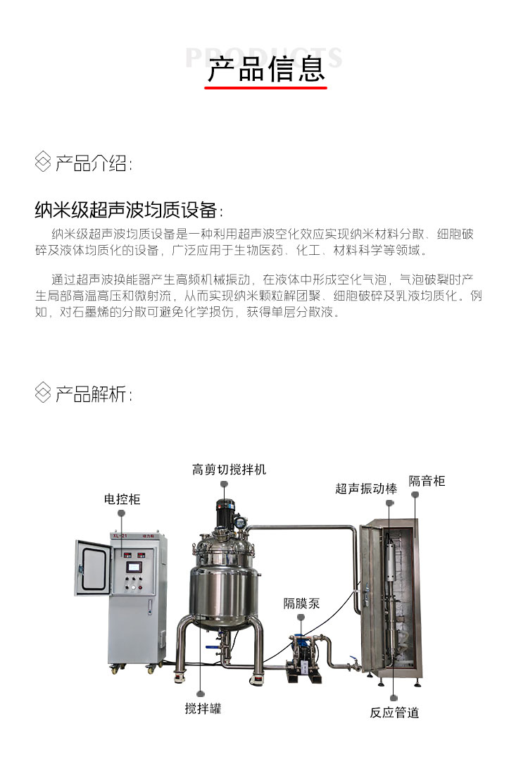 超声波液体处理设备是利用超声波的空化效应,即当超声波在液体中传播时,由于液体微粒的剧烈振动,会在液体内部产生小空穴。这些小空穴迅速胀大和闭合,导致液体微粒之间发生猛烈的撞击,从而产生几千到上万个大气压的压强。这种微粒间剧烈的相互作用产生的微射流会使物料发生颗粒细化、细胞破碎、解团聚、相互融合等一系列反应,从而起到很好的分散、均质、搅拌、乳化、提取等作用。
